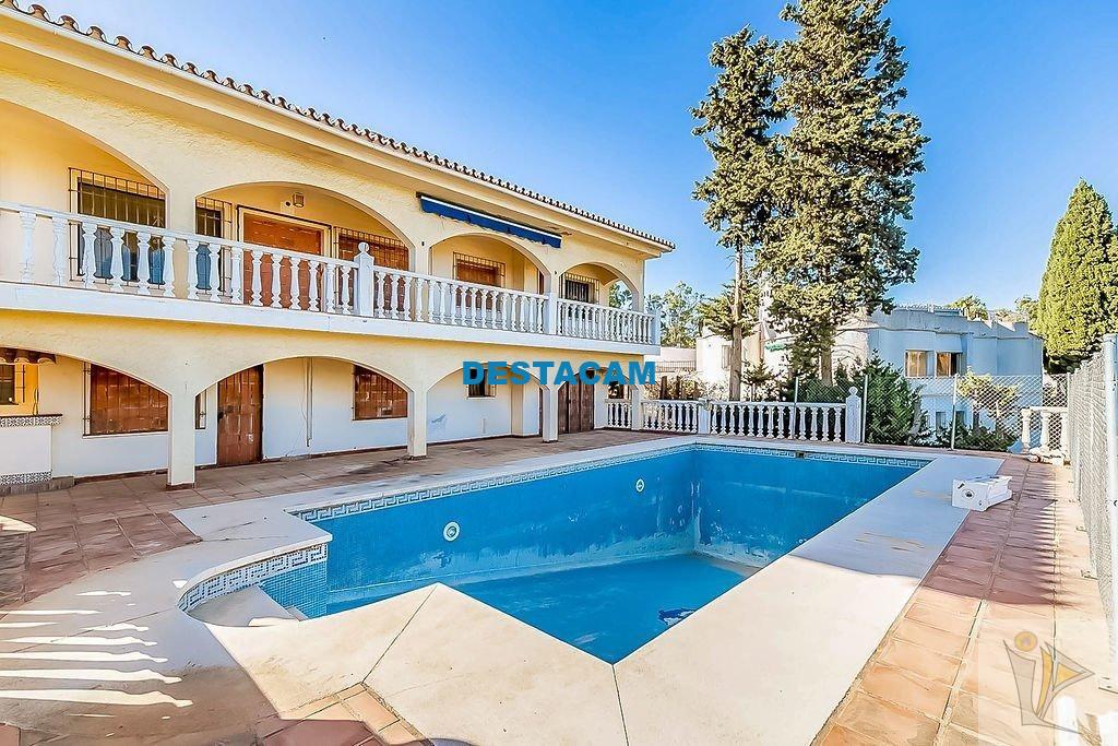 mercados, colegio, campos de golf, Mijas Golf Apartment Rental y Campo de Golf en Málaga-Mijas Golf y la playa a 10 minutos. Construido en 1970, este chalet independiente se asienta sobre una parcela de 1000 m², consta de planta sótano, planta baja y alta, comunicadas entre sí mediante escalera interior con una superficie total de 380 m². Se distribuye en salón-comedor con chimenea, cocina, 6 dormitorios, 6 baños, terrazas y porche de 52 m². La zona no edificada se destina a jardines, acceso y piscina descubierta.Visita sin compromiso, sin comisiones de intermediación.