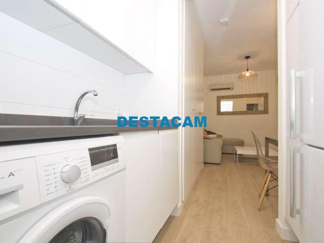 Este elegante apartamento tipo estudio en la calle Ayala, Salamanca, está equipado con aire acondicionado, sofá cama y cocina moderna con microondas, nevera grande y lavavajillas. Con una superficie de 35 m², esta propiedad está equipada con todo lo necesario para alojar una sola persona o una pareja.
